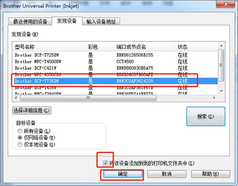 找到所需安装的打印机,点击确定。